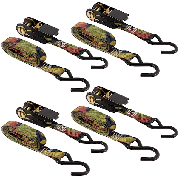 Ratchet Tie-Down, 8'X1" Woodland Camo Nylon Strap