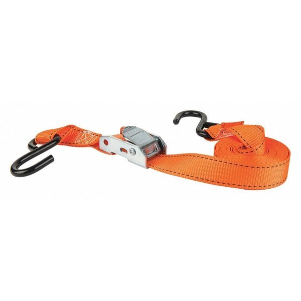 Tie Down Strap, Working Load Limit 300 lb, Color Orange, End Type S-Hook, Tensile Strength 900 lb/in, Tie Down Material Polyester, Overall Width 1 in, Reinforcement Properties General Purpose, Fixed End Length 2 in, Overall Length 10 ft, Adjustment Type Cam Buckle, Manufacturers Warranty Length 3 Months, End Material Steel, Product Type Tie Down Strap, Package Quantity 4