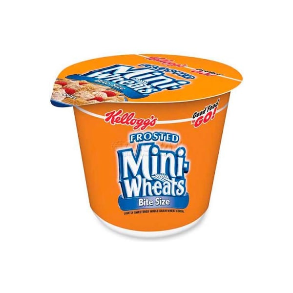 Kelloggs cereal-in-a-cup, frost mini wheats frosted mini wheats cereal offers whole grain fiber in individual super-sized portion cups. Ready-to-eat cereal has eight layers of whole grain fiber. Convenient containers provide a portable breakfast or treat. this product arrives to most customers in 2-3 business days.