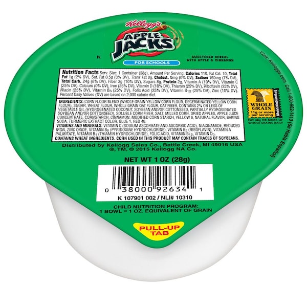 Kellogg's Reduced Sugar Whole Grain Apple Jacks Cereal 1 oz. Bowl