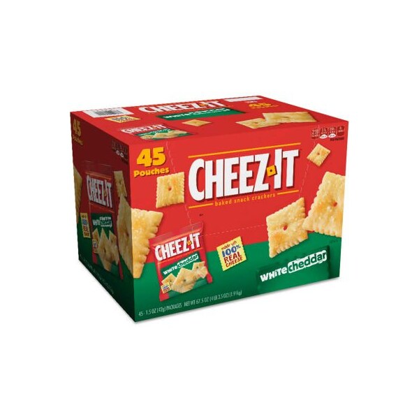 Sunshine cheez-it crackers, 1.5 oz. Bag, white cheddar, 45/carton get a lightly spiced, sharp-cheese flavor with your cracker crunch. Made with 100% real cheese. 0g trans fat. this product arrives to most customers in 2-3 business days.