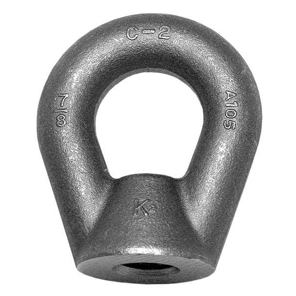 Eye Nut, Finish Black Oxide, Material Steel, Thread Size 1 1/2 In.-6, Thread Length 2 7/32 in, Eye Shape Oval, Eye Inside Diameter 2 1/2 in, Eye Outside Diameter 5 1/4 in, Overall Height 6 5/8 in, Working Load Limit 35,600 lb, System of Measurement Inch, Base Diameter 3.13 in, Base Height 2.22 in, Bore Type Threaded Tapped, Eye Thickness 1.38 in, Material Fabrication Drop Forged, Material Grade/Class Not Graded, Material Quality Standards ASTM A105, Pack Size Small Pack