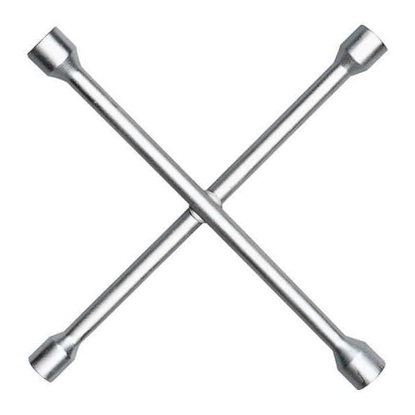 Lug Nut Wrench, Socket Size 17 mm, 19 mm, 21 mm, 22 mm, Socket Shape 6-Point, Number of Wrench Heads 4, For Vehicle Type Cars, RVs, SUVs, Trucks, Vans, Overall Length 14 in, Chrome, Electrostatic Paint, Overall Width 14 in, Metric