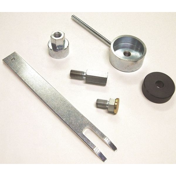 Tappet and Boot Replacement Tool Kit, Tool Type Tappet & Boot Replacement Tool Kit, Application Used for the replacement of the Bendix air disc brake tappet and boot assemblies, tappet inner seals, Overall Diameter Not Applicable, Overall Length 13 1/2 in, Overall Width 3 1/2 in, Number of Pieces 7, Material Steel, Includes Black Nylon Disc, Cup, Flange, Fork, Handle for Cup, Long Strut, Swivel Assembly