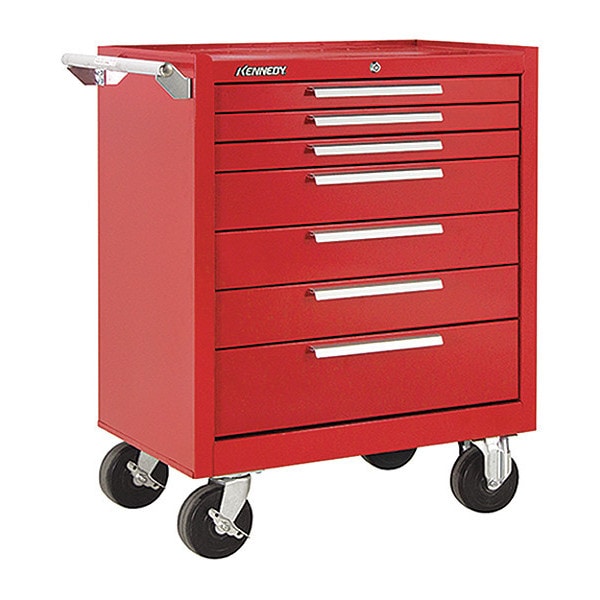Rolling Tool Cabinet, 7 Drawer, Red, 27 in W x 18 in D x 35 in H