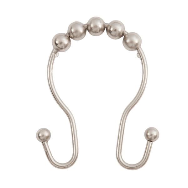 Beaded Roller Shower Curtain Double Hooks, Set of 12, Brushed Nickel