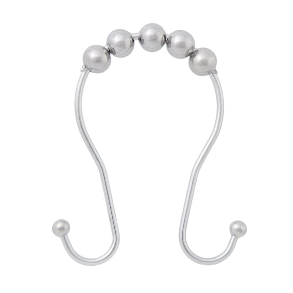 This set of twelve Kenney Beaded Roller Shower Curtain Double Hooks are designed to coordinate with many bathroom hardware finishes. With an additional hook on the back, use these to hang both a shower liner and a shower curtain separately, making it easy to remove or replace either. The beads help the hooks to glide effortlessly over your shower rod. Each package includes 12 double hooks, fitting all standard shower liners and rods.