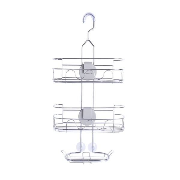 Organize your bath and maximize your storage with Kenney EasySlide 4-Way Adjustable Caddy Solution. EasySlide technology allows you to adjust the baskets from side to side or up and down. This steel shower caddy is rust-resistant and allows you to store all of your shower essentials in one place. The EasySlide shower caddy features two shelves, two hooks, and a soap dish. The baskets can be moved up and down or left and right to accommodate varying size bottles and can hold bottles upside down for easy dispensing. The wire soap bar shelf allows excess water to drain and air to circulate, drying the bar of soap. The two hooks are great for hanging loofahs, washcloths, or razors. The caddy comes with a rubber collar and suction cups to help keep it in place. The collar also prevents scratches to your showerhead, and the suction cups reduce the need to balance items. Dimensions: 25.5in H x 12.25in W x 5in D.