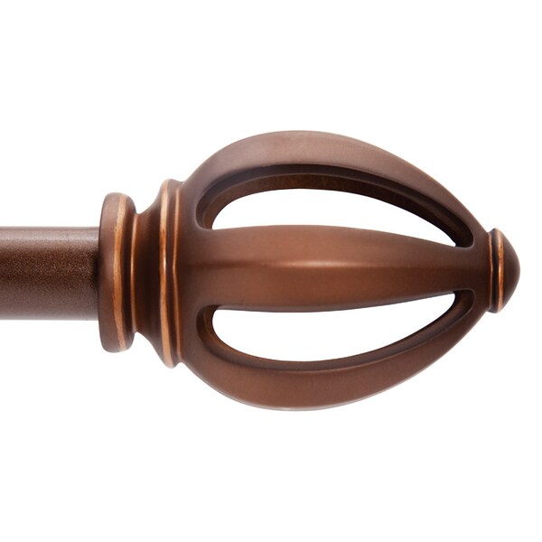 Fast Fit collection offers a full line of decorative curtain rods that install quickly and easily. The Rustic Copper Finish 41-120 Curtain Rod features a decorative Rod set with a Lucas design. The rod measures 3/4 inches in diameter and extends from 36 to 66 inches in length. The rod installs easily using finishes nails and mount similarly to a picture frame. There is no drilling required! The heavy duty steel construction insures that your rod and brackets will remain in place.