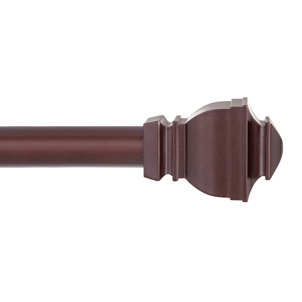 The Kenney Riley 1" Value Decorative Window Curtain Rod features larger finials that make a bolder statement1" diameter curtain rod adjusts from 30-84" to fit your window and projects 3.375” from the wallFor use with light to heavyweight curtains on larger windows in your bedroom, living room, and dining roomSteel rod in chocolate brown finish with decorative sonic welded lightweight plastic finials and matching mounting hardwareIncludes: one telescoping curtain rod with finials, two brackets, one center support, screws, drywall anchors, and installation instructions
