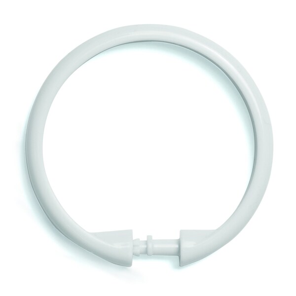 This set of twelve Kenney Smooth Shower Curtain Rings come in several base colors to coordinate with many bathroom hardware finishes. Made of plastic, these shower curtain rings will not rust in your bath. These plastic rings have an easy snap closure and glide smoothly across shower rods. Each package includes 12 rings, fitting all standard shower liners and rods.