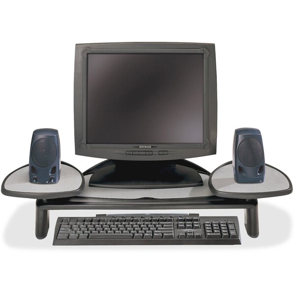 Gain valuable workspace, organize your desk and position your monitor to the desired height. Adjustable platform and shelves with keyboard storage. Support up to 35 lbs.
