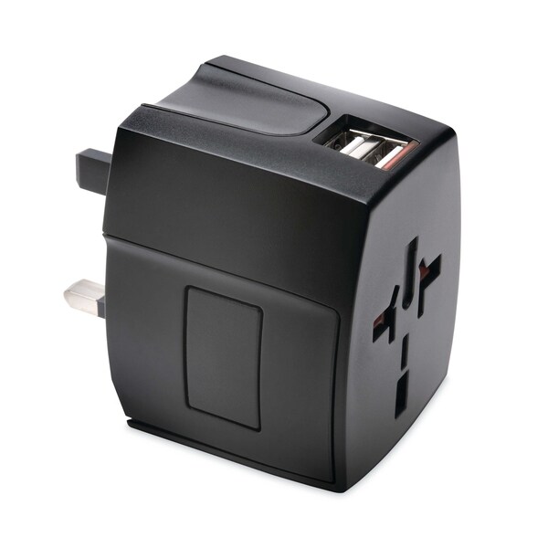 The ideal companion when you're heading abroad and need to charge the battery on your devices, the International Travel Adapter provides professional-level, simultaneous charging of up to three devices in over 220 countries. Dual USB ports make it easy to charge smartphones and tablets, including the iPhone, iPad, Galaxy S, Microsoft Surface, or other favorite devices. Plus, with the two-pole adapter you can power anything from a laptop to a 2-in-1 hybrid like the Surface Pro. Slide-out plug configurations for USA/Japan, Australia/China, UK and Europe that work in over 220 countries. Power a laptop and charge two mobile devices simultaneously. Two-pole adapter does not support grounded 3-prong U.S. plugs. Dual 2.4 A USB ports provide fastest charge for smartphones and tablets.