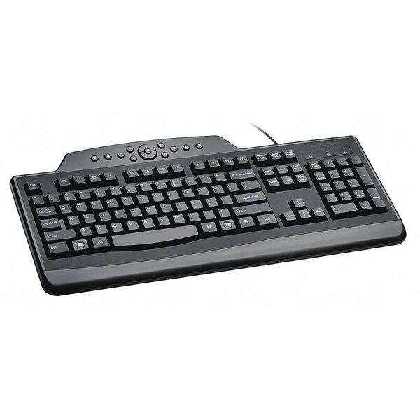 Keyboard, Corded, Ergonomic Design No, USB Connector Type, Black, Cable Length 52 in, Compatible With Windows(R) XP, Windows Vista(R), Windows(R) 7 and Mac OS, Length 1.6 in, Width 18.5 in, Height 8.75 in, Features Adjustable Height, and Spill-Proof Keyboard, Includes Padded Wrist Rest