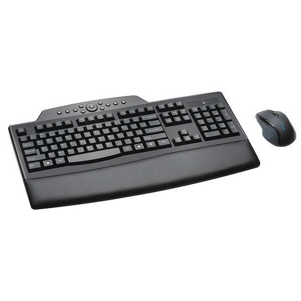 Keyboard and Mouse Set, Wireless, Optical, Ergonomic Design Yes, Compatible With Windows Vista(R), Windows(R) 7, Windows(R) XP, USB Connector Type, Black, Cable Length Not Applicable, Number of Buttons 2, Height 10 3/4 in, Length 2 3/4 in, Width 18 1/2 in, Features Right-Handed Design, Extended Battery Life Up to 12 Months, Padded Wrist Rest, Nine-Way Adjustable Feet, Spill-Proof