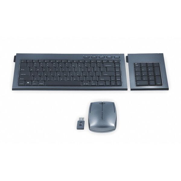 Keyboard/Mouse Set, Wireless, Laser, Compatible With PC/MAC(R), USB Connector Type, Graphite, Number of Buttons 2, Height 1 in, Length 3 1/2 in, Width 10 1/4 in, Features Laser Pointer, Includes (6) AA Batteries, Driver Disk