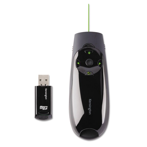 Make your point with this bright green wireless laser presenter that's suitable for even the biggest rooms and brightest screens. It's ten times brighter than standard red lasers, so it stands out against even the brightest LCD and plasma displays. Its intuitive four-button design makes it easy to navigate. When you need to move your cursor, a quick flip of a button gives you full cursor control. The powerful remote resists interference and lets you control Keynote® or PowerPoint® from up to 150 feet away.