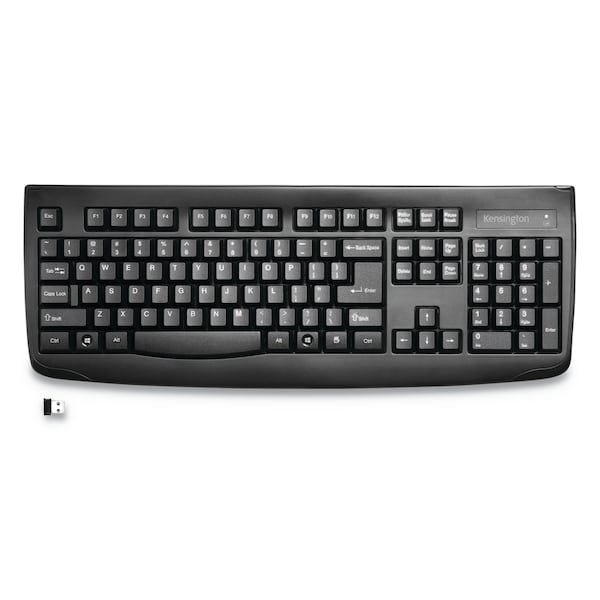 Spill-proof Pro Fit Wireless Keyboard features a thin sealed membrane that repels water and other liquids, keeping the wiring safe. The keyboard is full-size with 6 rows and includes a numeric keypad, giving the touch typist a professional experience for enhanced productivity. With a 2.4 GHz nano receiver, your desktop stays uncluttered since there's no wiring to get in your way, plus you gain the freedom to easily take your keyboard on the go if needed. With Plug & Play installation, simply insert the receiver into your device and you'll be typing in no time. Compatible with Windows®.
