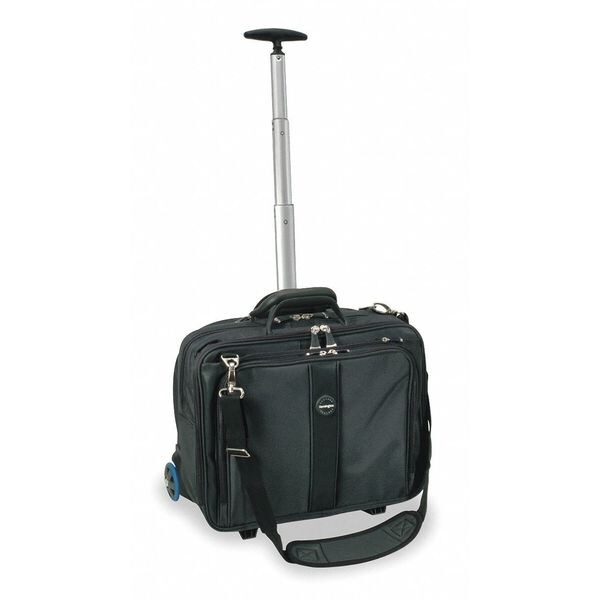 Roller Laptop Bag, Fits Laptop up to 18 in, Color Black, Material Nylon, Length 18 1/2 in, Width 16 1/8 in, Depth 9 3/8 in, Includes Shoulder Strap, Telescoping Handle