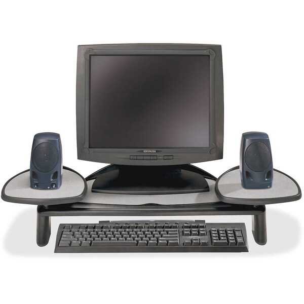 Monitor stand features a special thin, sleek design for flat-panel monitors. As a part of the SmartFit System, the monitor stand offers a simple setup that maximizes the ergonomic benefit for improved comfort. Easily adjust in height from 2-1/2" to 4-1/2" above the desk, allowing keyboard storage. Monitor stand supports up to 35 lb. and is sized to accommodate flat panel monitors up to 21". Design includes two adjustable stands for speakers, a PDA cradle or other workstation tools. Nonslip rubber feet and top keep your items secure.
