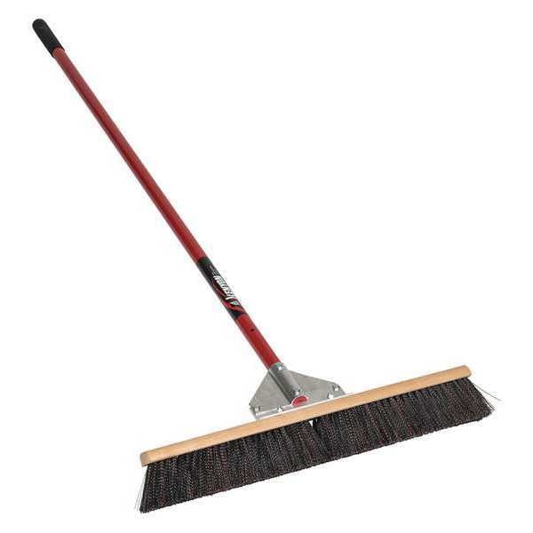 Med Bristle Broom,24 In.,60 In. Red Handle