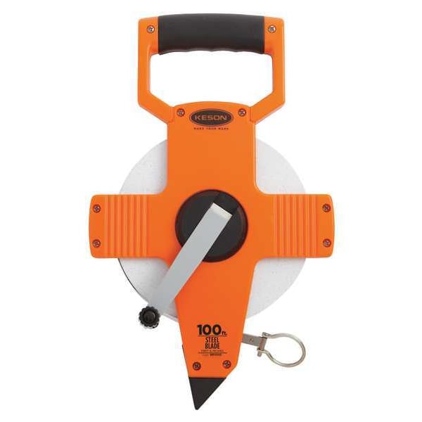 Long Tape Measure, Features Double-Sided, Case Material Polycarbonate, System of Measurement SAE, Graduation Marks 1/8 in, Tip Style Nonmagnetic Single Hook, Zero Point Location Hook End, Blade Length - Metric Not Applicable, Blade Length - SAE 100 ft, Blade Material Steel, Blade Width 3/8 in, Blade Return Type Manual, Blade Type Single-Sided, Case Color Gray, Case Length 7 1/2 in, Lock Type Nonlocking, Graduation Units Feet, Inches, Numeric Marks Feet, Inches, Standout Length Not Applicable