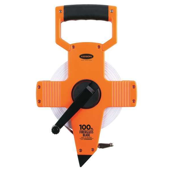 The Keson OTR-10M-100 100 ft/30m Engineer's Tape Measure is the ideal tool for any project. It has graduations in both metric and imperial units, making it easy to measure up with this tape measure. With a yellow and white blade color, this tape measure is easy to spot on any job site. The 1/2 in. wide blade has double throat rollers and a hook end that helps you reach tight spaces with ease. Its rewind type is manual and its case material is ABS. The Keson OTR-10M-100 100 ft/30m Engineer's Tape Measure will help you complete your next project without having to worry about accuracy or efficiency.