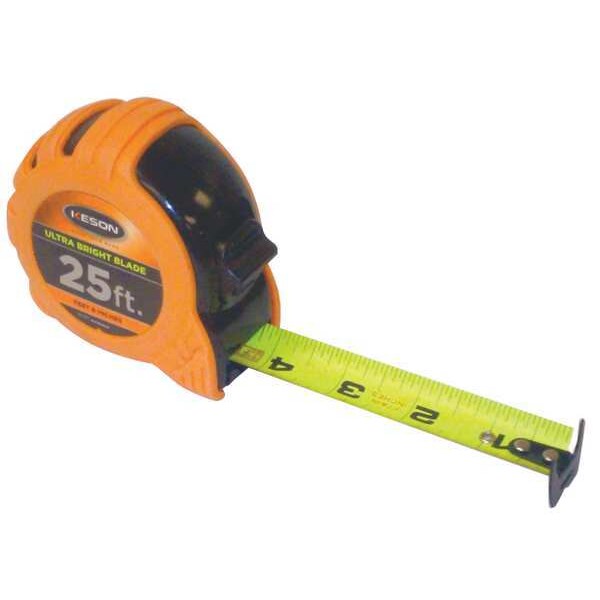 The KESON PG1825UB 25 ft Tape Measure is a reliable tool for any type of job. With an easy-to-read printed blade, you can measure accurately with this tape measure. Featuring a double sided printed blade, the SAE tape measure is designed to be read from both sides. It has a high visibility yellow blade that stands out against dark surfaces and is easily readable in low light conditions. The 1/8" graduations are marked on both sides of the blade and it also has fractional inches marked on one side. Its ABS case ensures that your measurements will not be marring by metal surfaces or other tools. The KESON PG1825UB 25 ft Tape Measure will help you take accurate measurements every time.