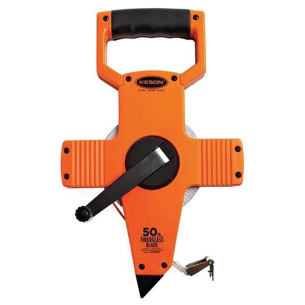 Long Tape Measure, Features Double Throat Rollers, Hook End, Case Material ABS Plastic, System of Measurement SAE, Graduation Marks 1/8 in, Tip Style Nonmagnetic Single Hook, Zero Point Location Hook End, Blade Length - Metric Not Applicable, Blade Length - SAE 50 ft, Blade Material Fiberglass, Blade Width 1/2 in, Blade Return Type Manual, Blade Type Single-Sided, Case Color High-Visibility Orange, Case Length 7 1/2 in, Lock Type Nonlocking, Graduation Units Feet, Inches