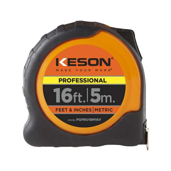 Tape Measure, Features Finger Brake, Case Material ABS Plastic with Rubber Grip, System of Measurement Metric/SAE, Graduation Marks 1/16 in, Tip Style Nonmagnetic Single Hook, Zero Point Location Hook End, Blade Length - Metric 5 m, Blade Length - SAE 16 ft, Blade Material Steel, Blade Width 1 in, Blade Return Type Automatic, Blade Type Single-Sided, Case Color High-Visibility Orange, Case Length 2 3/4 in, Lock Type Slide, Graduation Units Centimeters, Feet, Inches, Millimeters