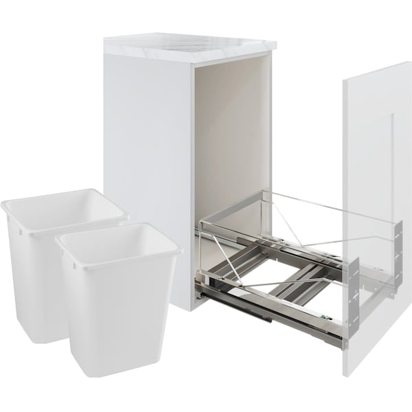 Waste Pullout 36 QT Double Chrome FE Soft Close w/ White Bins