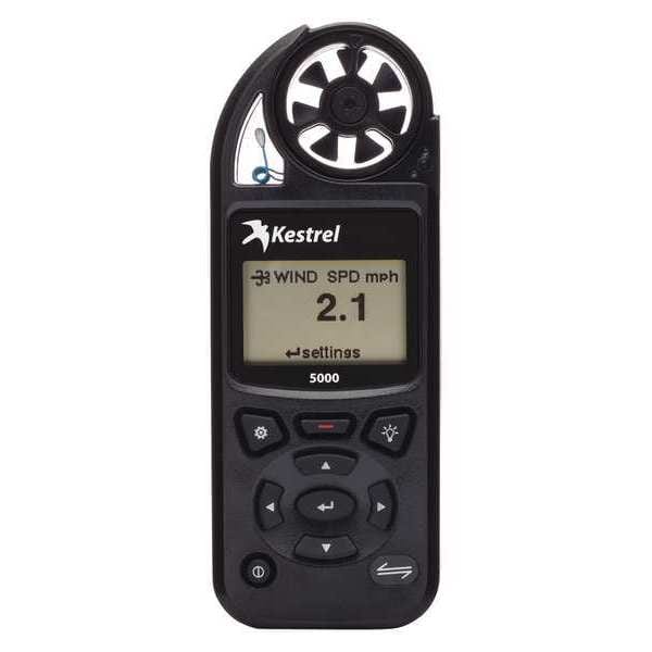 Environmental Meter, Environmental Sensor Type Air Flow Sensor, Ambient Temperature Sensor, Compass, Pressure Sensor, Relative Humidity Sensor, Air Velocity Range 0.4 to 89 mph, 0.6 to 60 mps, 1.2 to 116.6 knots, 118 to 7874 fpm, 2.2 to 216 kph, Series 5000, Dew Point Range -20 Degrees to 158 Degrees F, Meter Type Environmental Meter, Humidity Range 5 Percent to 95 Percent, Air Velocity Accuracy +/-3 Percent, Battery Type AA, Housing Color Black, Data Logging Yes, IP/NEMA Rating IP67, NEMA 6