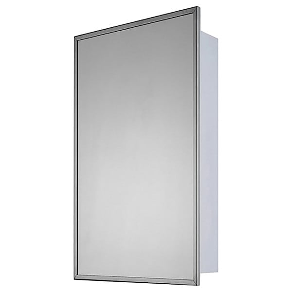 Medicine Cabinet, ADA Compliant Not ADA Compliant, Cabinet Depth 3 7/8 in, Frame Finish Bright Annealed, Frame Material Stainless Steel, Includes Lamps Not Applicable, Lamp Type Not Applicable, Mirror Depth 1/8 in, Mirror Height 25 1/2 in, Mirror Surface Glass, Mirror Width 15 1/2 in, Overall Depth 4 in, Overall Height 26 in, Overall Width 16 in, Power Source Not Applicable, Product Type Medicine Cabinet, Shape Rectangular, Includes Adjustable Shelves, Mounting Type Wall