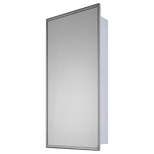 Medicine Cabinet, ADA Compliant Yes, Cabinet Depth 4 in, Frame Finish Bright Annealed, Frame Material Stainless Steel, Includes Lamps Not Applicable, Lamp Type Not Applicable, Mirror Depth 1/4 in, Mirror Height 35 1/2 in, Mirror Surface Glass, Mirror Width 17 1/2 in, Overall Depth 4 1/4 in, Overall Height 36 in, Overall Width 18 in, Power Source Not Applicable, Product Type Medicine Cabinet, Shape Rectangular, Features Full Length Piano Hinges, Tempered Glass Shelves, Includes 4 Glass Shelves