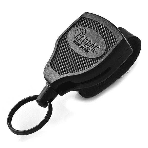 Key Reel With Kevlar(R) Cord, Law Enforcement, Extended Length 48 In, Retraction Force 8 to 10 Oz, Case Size 2 1/4 In, Ring Type Split, Ring Size 1 1/4 In, Fits Belts Up To 2 1/4 In, Attachment Type Belt Loop, Polycarbonate Construction, Matte Black, Features Locking Ball And Socket, Can Also Hold Flash Light and Small Hand Tools, Includes Split Ring