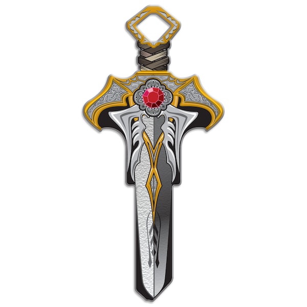 With its intricate detail and large ruby gem, this battle-ready Dagger Key Shape is perfect for the finest royal warrior. Highest quality brass house Schlage key blank. Enamel coated, printed with deep color saturation to resist scratching and fading.