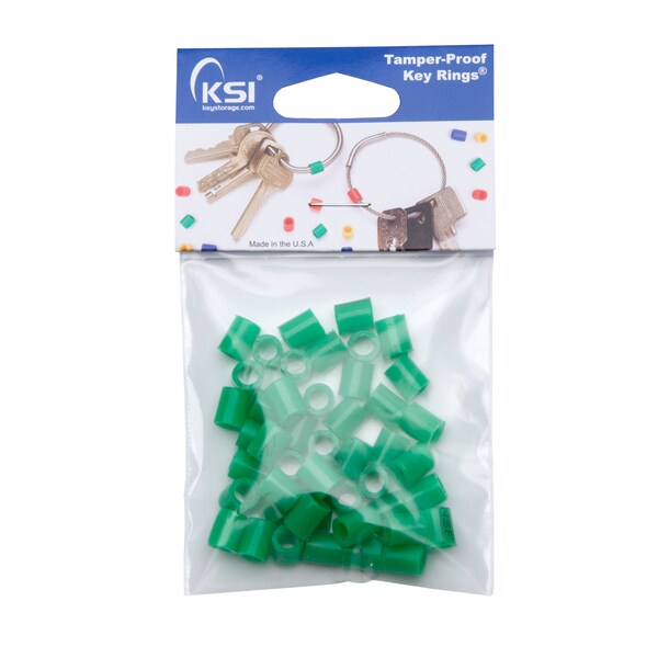 The only plastic we use with our Tamper-Proof Key Rings is the color coded tag. Five colors are available to help group key rings for quick identification.