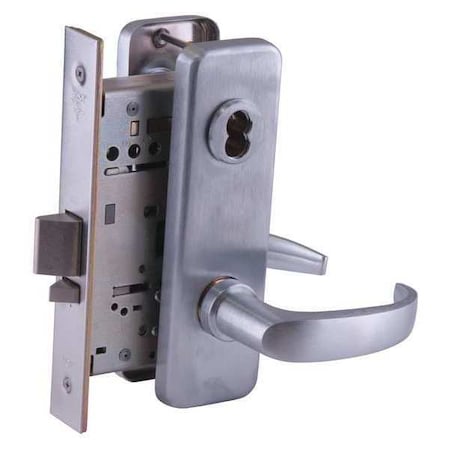 Grade 1 Storeroom Mortise Lock, Augusta Lever, CO Rose, Conventional Cylinder, Satin Stainless Stee
