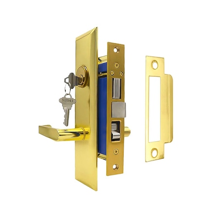 Durable Heavy Duty Mortise Lockset w/Lever US3 Polished Brass, 2-1/2in Backset Entrance, Right Handed