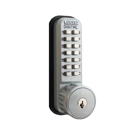 Lockey Mechanical Keyless Surface Mount Hook Bolt with Key Override Satin Chrome Marine Grade Finish