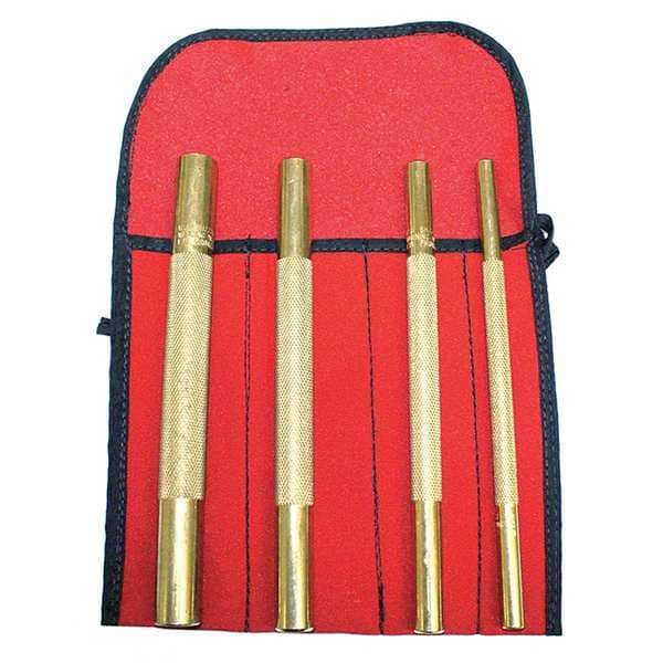Pin Punch Set, Length 8 In, Brass, 4PC