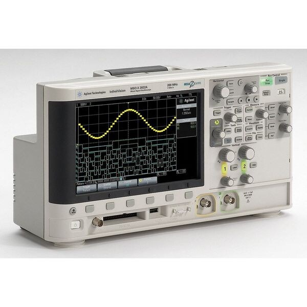 Oscilloscope, Bench, Bandwidth (MHz) 200MHz, Rise Time 1.75 ns, Max. Voltage 400, Max./Min. Sweep Speed 2 nS/div to 50 s/div, Trigger Sensitivity Int./Ext. 10mV/div internal/ 200mV external, Vertical Operating Modes Normal, Peak Detect, Averaging, High Resolution, Segmented, Sweep Speed Accuracy 25ppm +- 5 ppm Per Year Aging, +-8 Divisions From Center Screen Sweep Magnification, Triggering Mode Edge, Pulse Width, Pattern, Video, Triggering Source Analog channels, External, Line WaveGen