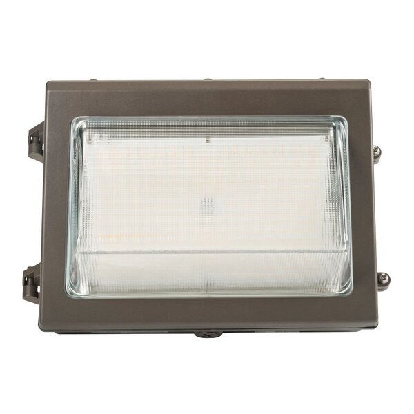 55W LED Wall Pack feat. Color Select, Traditional Open Face Medium Housing. 120-277V Input, 3000K/4000K/5000K. 0-10V Dimmable. Standard Bronze Housing.