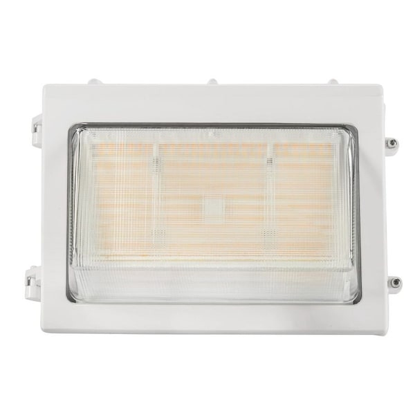 80W LED Wall Pack feat. Color Select, Traditional Open Face Medium Housing. 120-277V Input, 3000K/4000K/5000K. 0-10V Dimmable. White Housing.