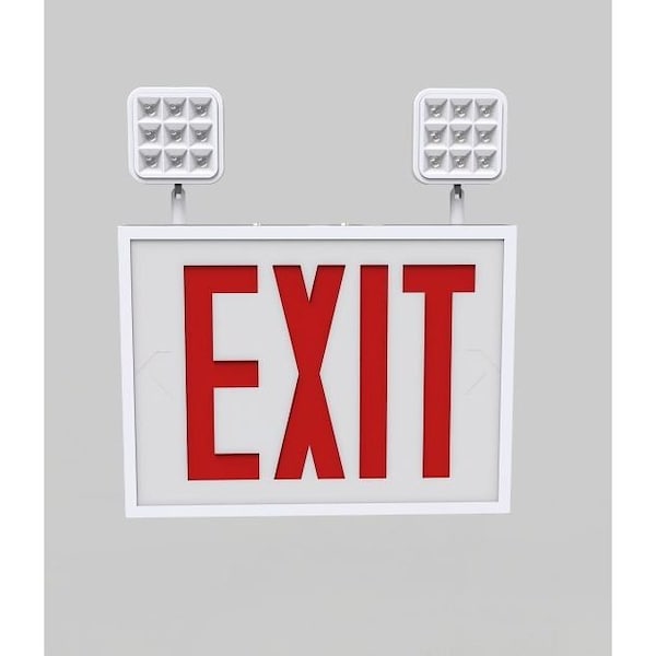 Exit Combo | Steel | Chicago Compliant | Style 1 | White Color | Single Facing | Red Lettering | 6500K Dual Heads | Surface Mount | 120-277 Vac Input | Emergency Battery Backup