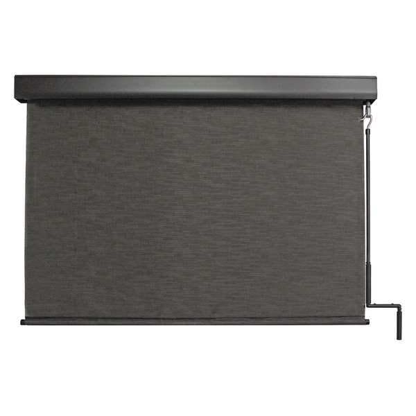 Exterior Sun Shade, Valance Width 96 in, Valance Depth 2 7/8 in, Valance Height 3 1/4 in, Valance Color Oil Rubbed Bronze, Fabric Color Kona, Fabric Height 96 in, Fabric Width 93 3/8 in, Operation Mechanism Pole and Crank, Operation Side Left, Right, Tie Down Type Bungee and Hook System, UV Protection 90 Percent, Standards Greenguard, NFPA, Oeko-Tex, Assembly Assembled, Blackout No, Includes Valance Yes, Includes Assembly Tools Not Applicable, Mounting Location Wall, Ceiling