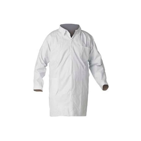 Keyguard lab coat, 3 pockets, elastic wrists, snap front, single collar, white, XL, 30/case. Keyguard lab coat that is a cost-savings alternative to comparable protective fabrics and provides the worker with outstanding protection, durability, and comfort. Keyguard is a microporous polyolefin fabric that is very effective in applications where similar protective garments are used.