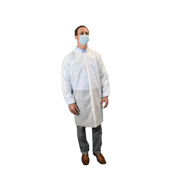 Lab Coat, SMS, Snaps Closure, White, 2XL, 30 PK