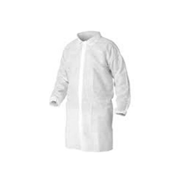 polypropylene lab coat that is made of a breathable fabric that provides economical protection with elastic wrists . It is the best low cost solution to protect workers against dry particulates, dirt, grime, and contamination control. This disposable lab coat is designed for roominess and fuller coverage as well as comfort.