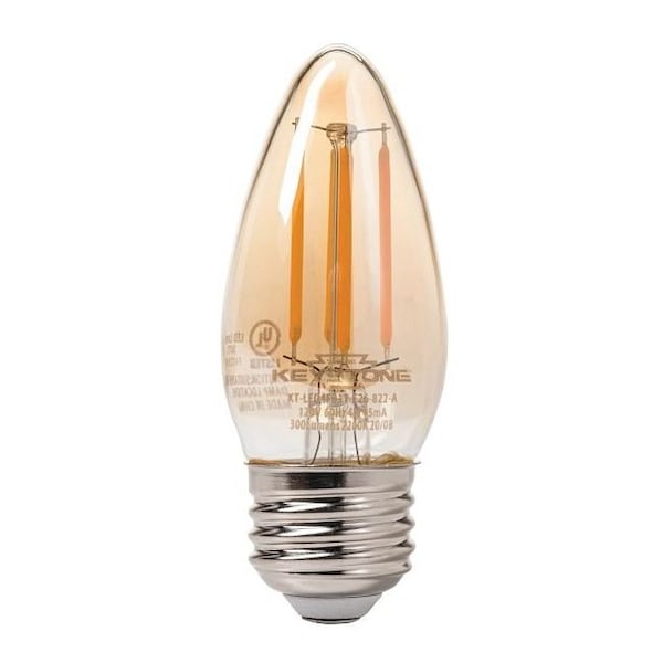 Straight Tip Chandelier Filament bulb, 40W Equivalent, B11 shape, E26 Medium base, 2200K, 80 CRI , Amber